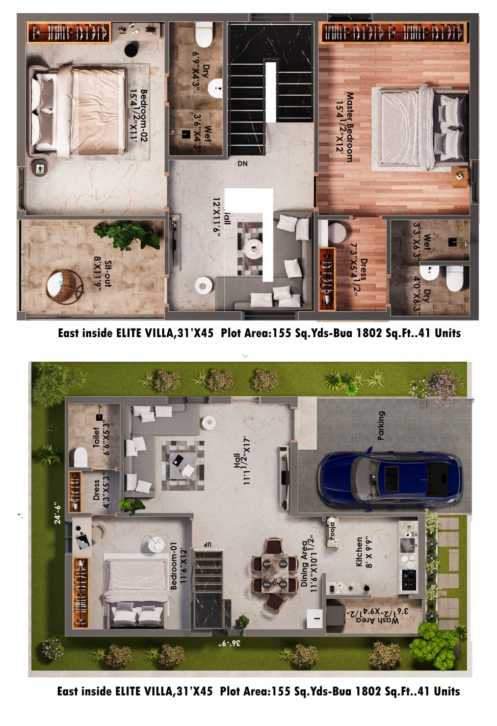 * లగ్జరీ లివింగ్: సంపూర్ణ వాస్తు మరియు గాలి, వెలుతురు వచ్చేలా రూపొందించిన తూర్పు ముఖద్వార 3 BHK విల్లాలు.