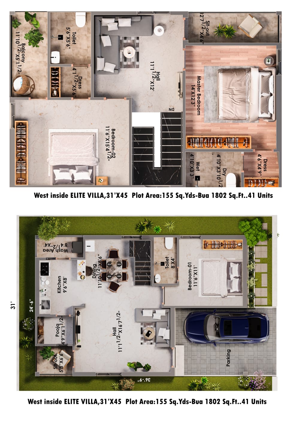 * Modern Infrastructure: 40-feet BT roads, underground electricity, and designer LED street lights.
