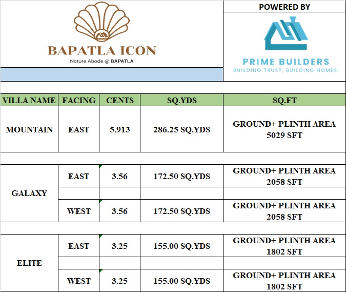 ఈరోజే BAPATLA PRIME ICON లో మీ విల్లాను బుక్ చేసుకోండి!